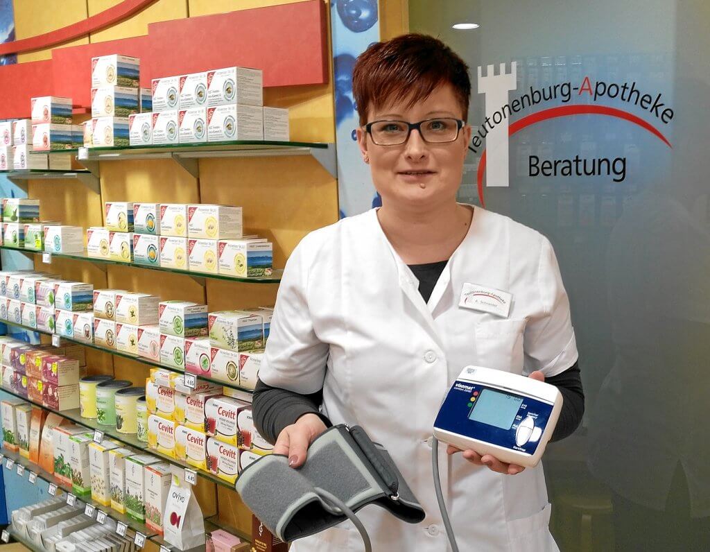 Warburg. Viele Patienten messen ihren Blutdruck regelmäßig ihrer Therapie mit dem Arzt zusammen zu verfolgen. Neben dem richtigen Messablauf ist ein regelgerecht funktionierendes Blutdruckmessgerät Voraussetzung dafür. Um dies sicherzustellen und die Patienten zu Hause zu unterstützen, bietet die Teutonenburg-Apotheke, Warburg, im Rahmen ihrer diesjährigen Blutdruckwochen am 12. März 2025 die Wartung und Kontrolle von Blutdruckmessgeräten an.